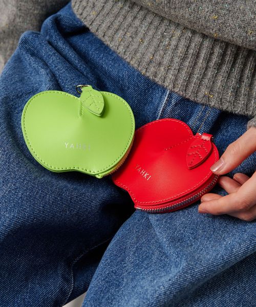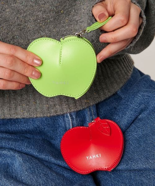 りんご型のルックスがキャッチーで可愛らしい<YAHKI>のレザーポーチ。