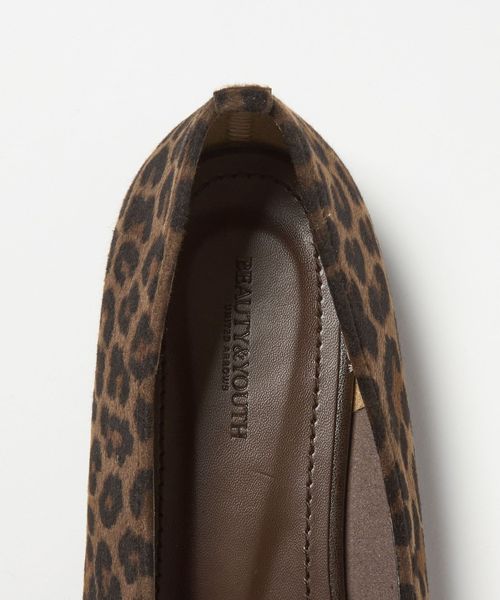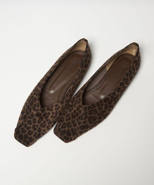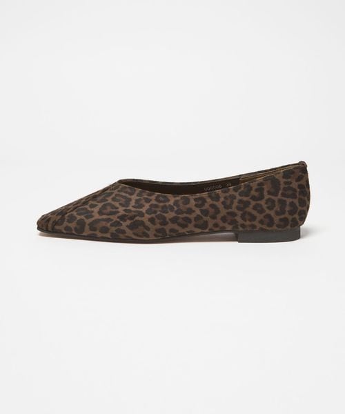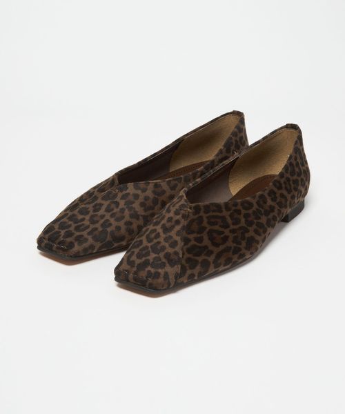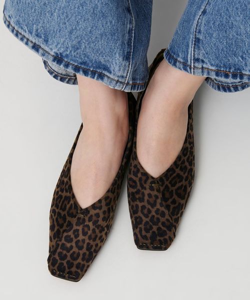 トレンドのレオパード柄にアップデートされた、Vカットフラットシューズ。