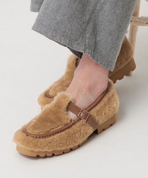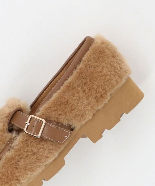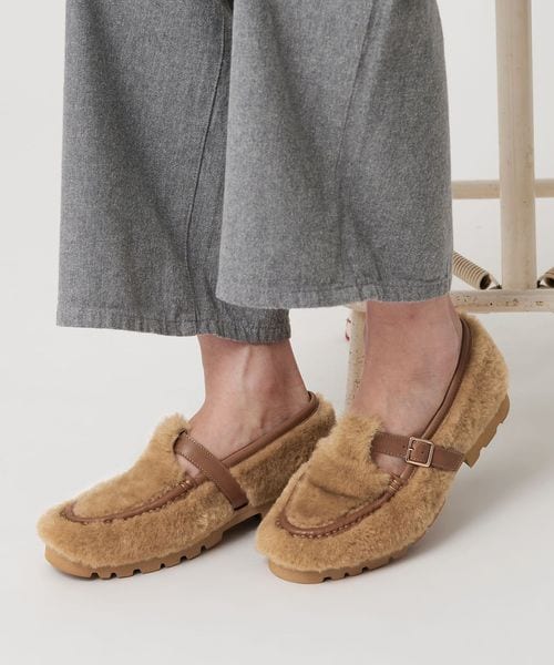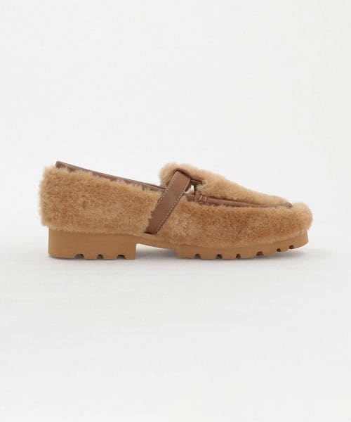 もこもこのファーライク素材をアッパーにあしらった愛らしいムードのローファー。