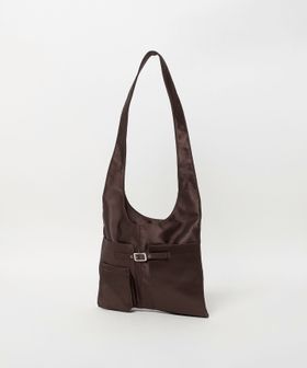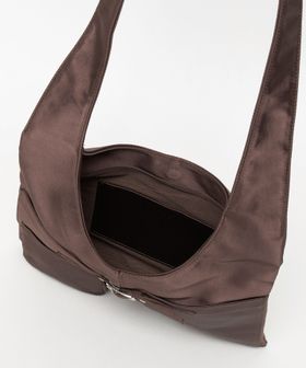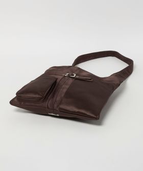 目を惹くツヤ感が魅力の素材を使用したショルダーバッグ。