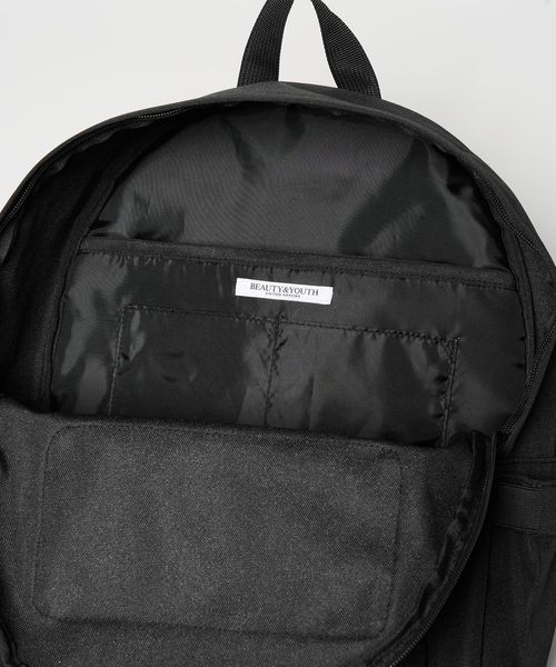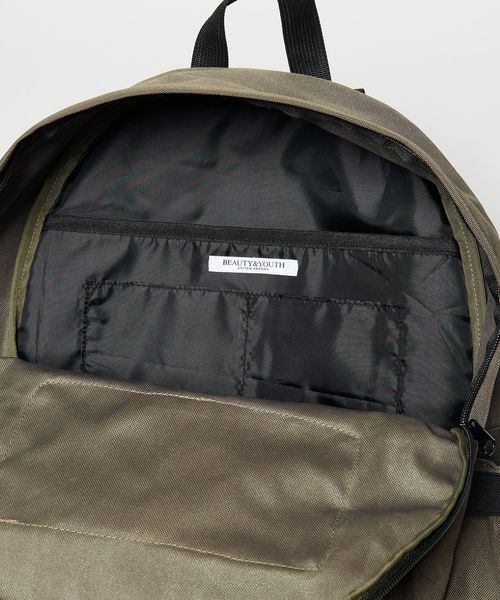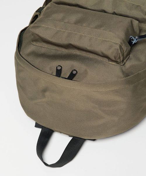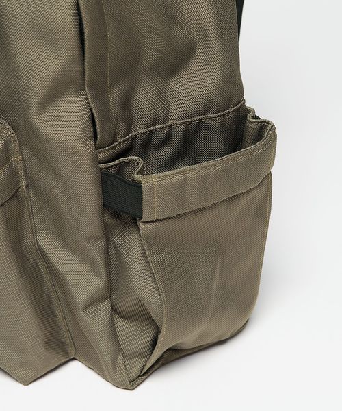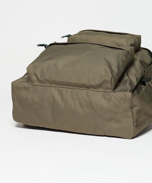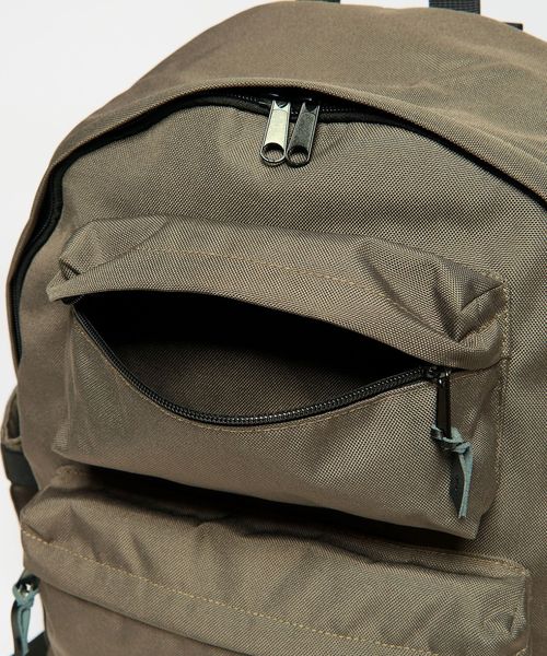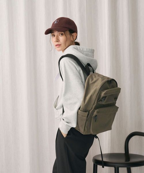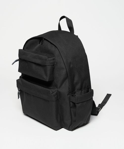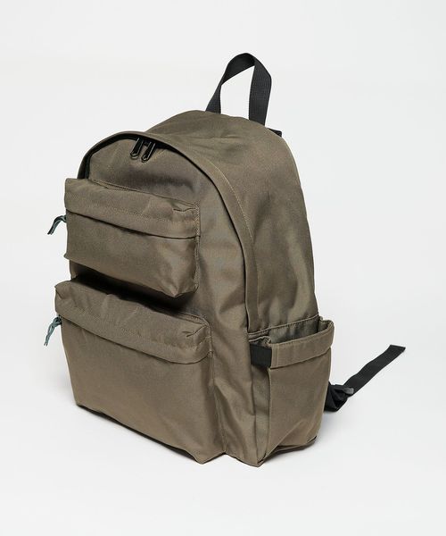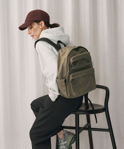 フロントに並ぶ、大きさの異なるダブルポケットが印象的なリュック。
