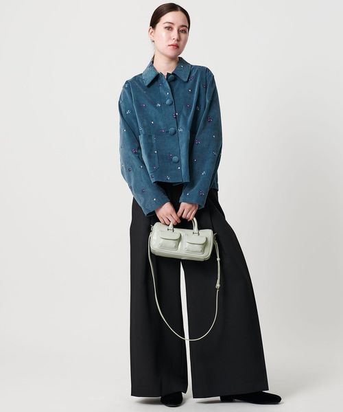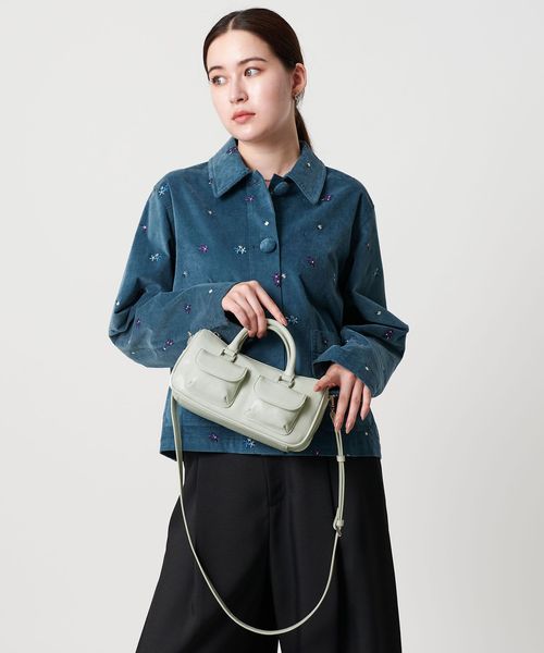 大胆なフラップポケットディテールが目を引く「チャビー ハーフバッグ」。