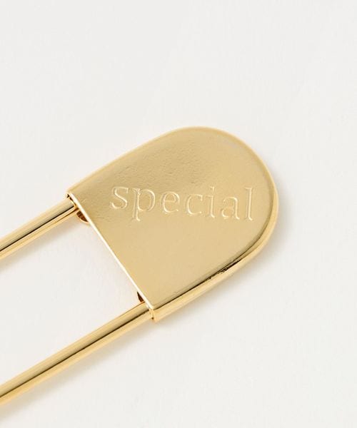ロゴメッセージを刻印した斬新なデザインが印象的なピンアイテム。