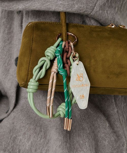 <VIOLAd’ORO>オリジナルのロゴ入りパーツが付いた、カラフルで遊び心のあるバッグチャーム。