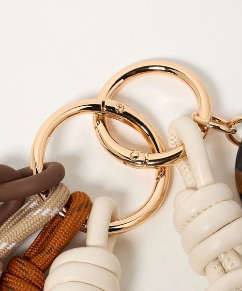 パラコードやレザー調コード、プラスチックチェーンを組み合わせた存在感のあるルックスで、いつものバッグにアクセントをプラスします。