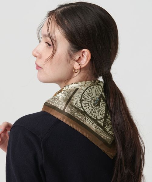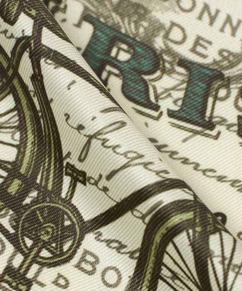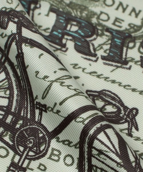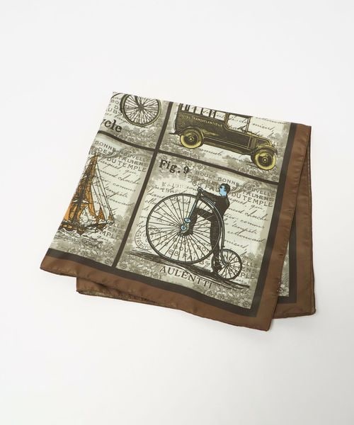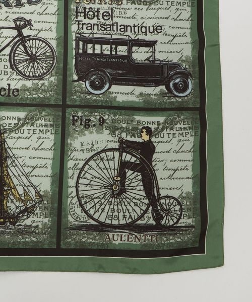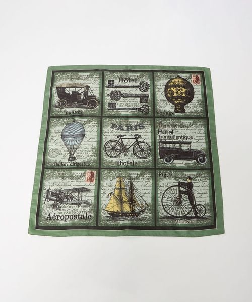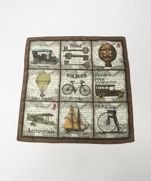 自転車や気球などの乗り物をモチーフにしたヴィンテージ調デザインのスカーフ。