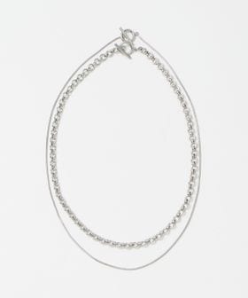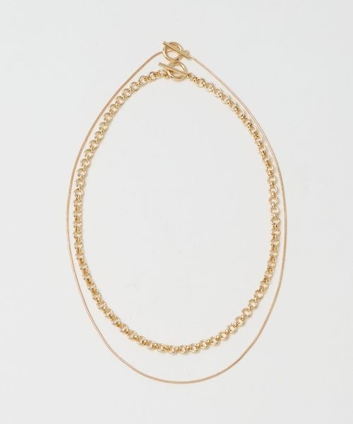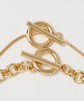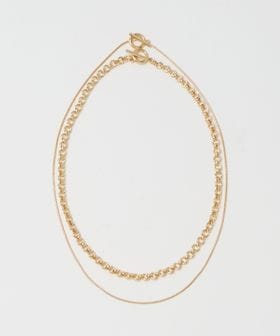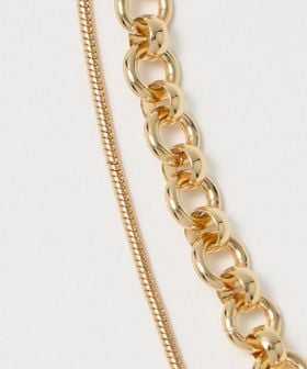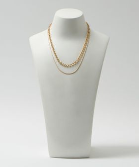 異なるデザインのチェーンネックレスを2本付けた、嬉しいセットアイテム。