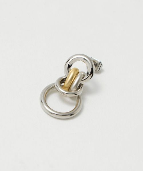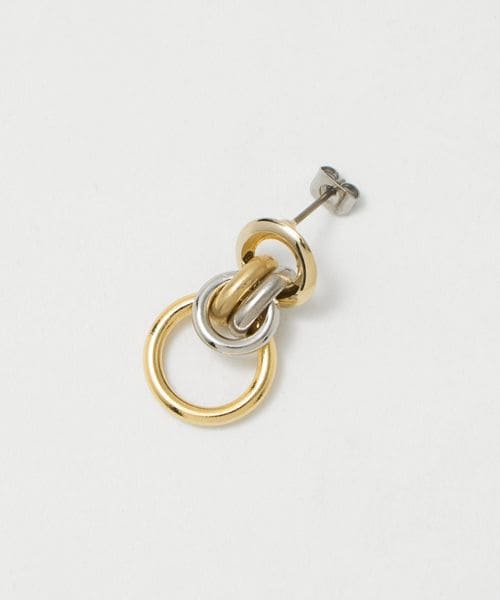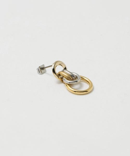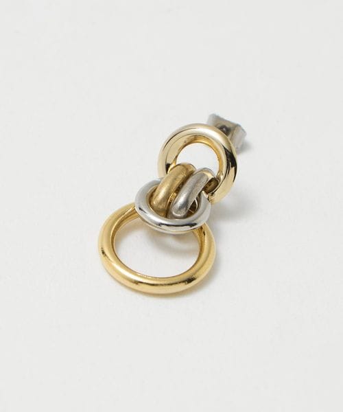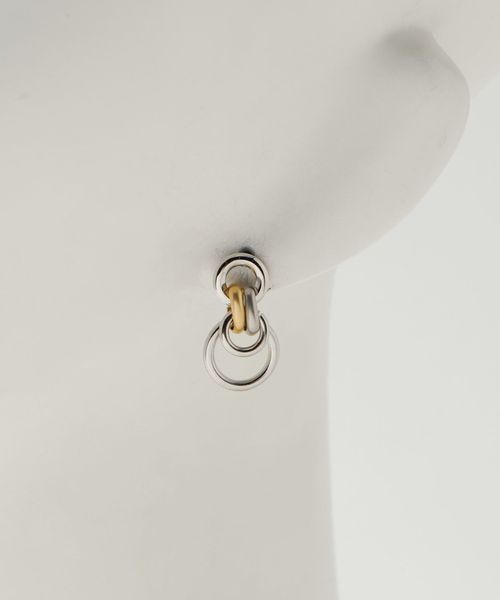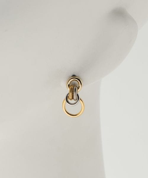大小のリングモチーフを組み合わせ、ミックスカラーで仕上げたピアス。