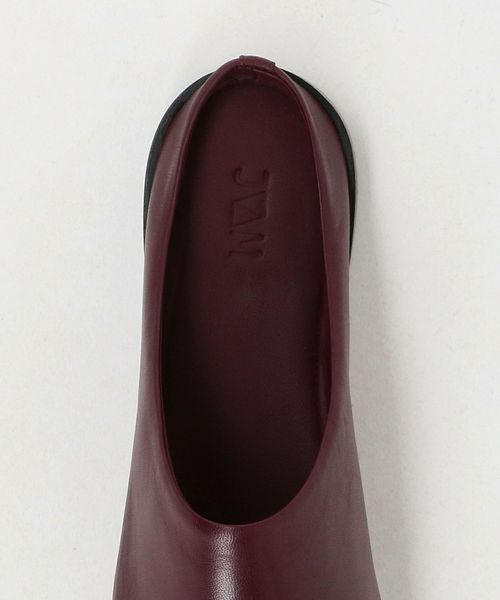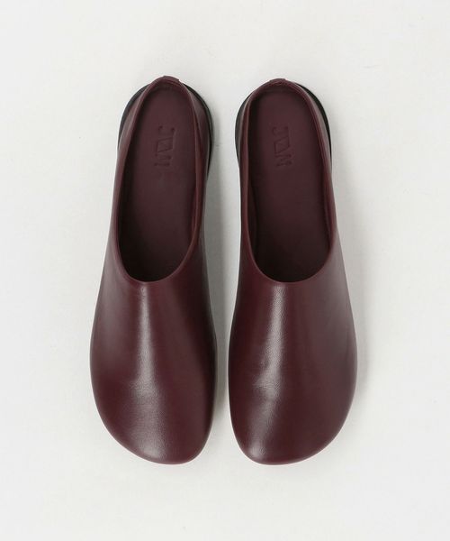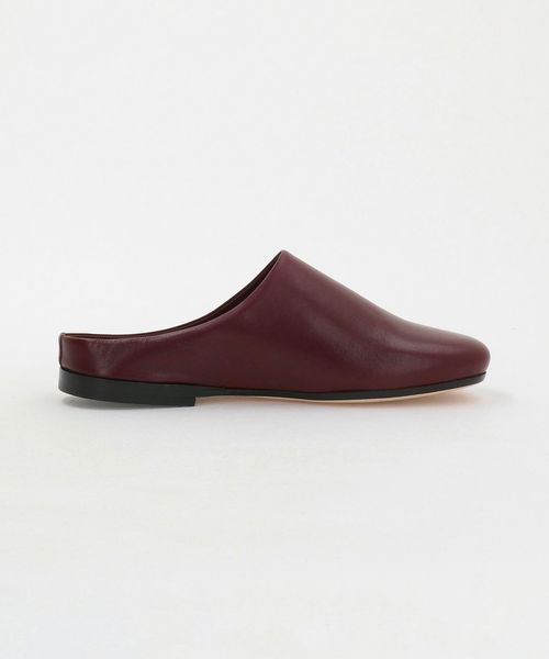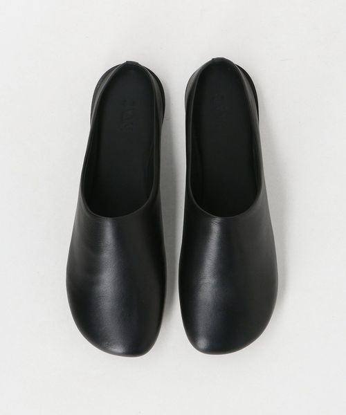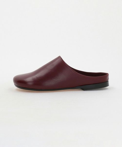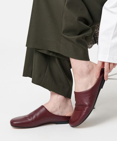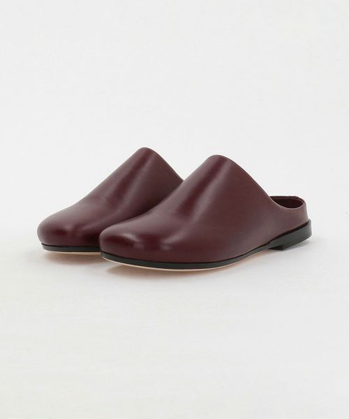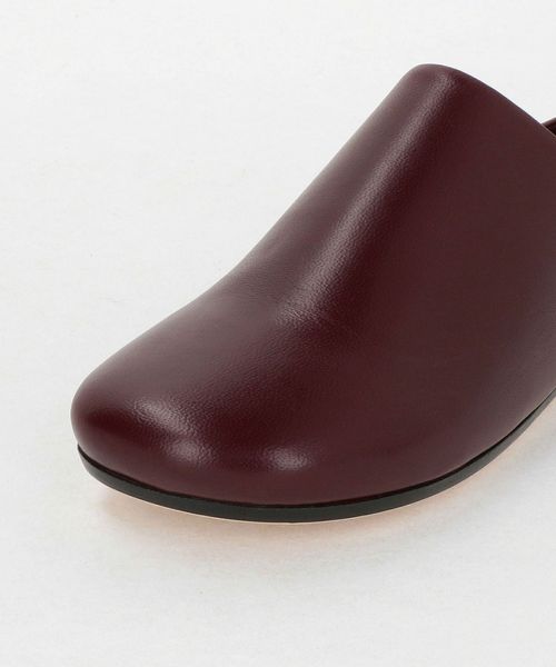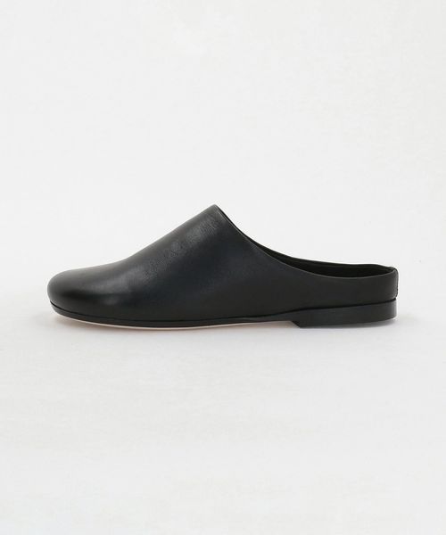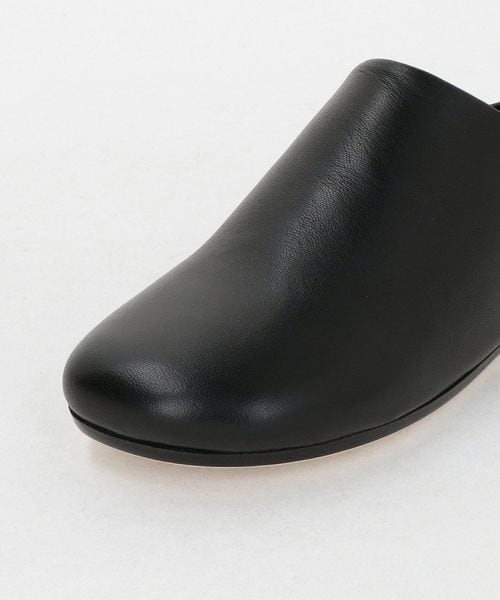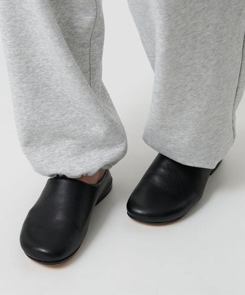 羊革を使用したころんと丸みのある、足を包み込むデザインのスライダーシューズ。