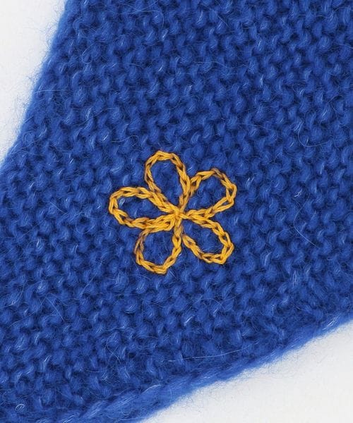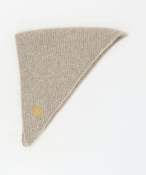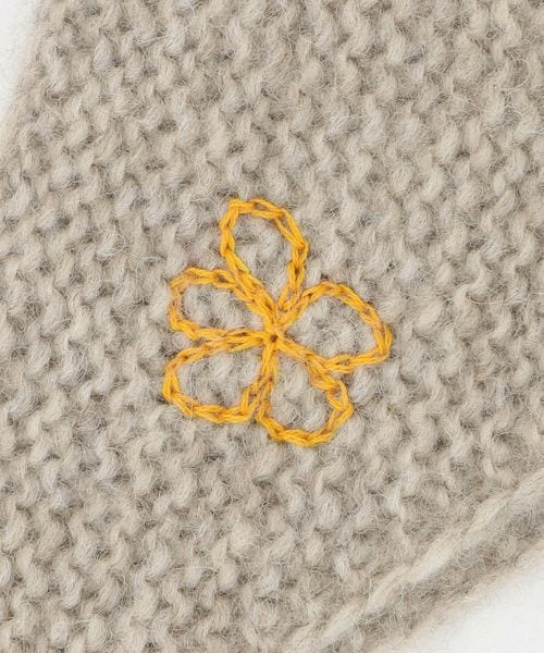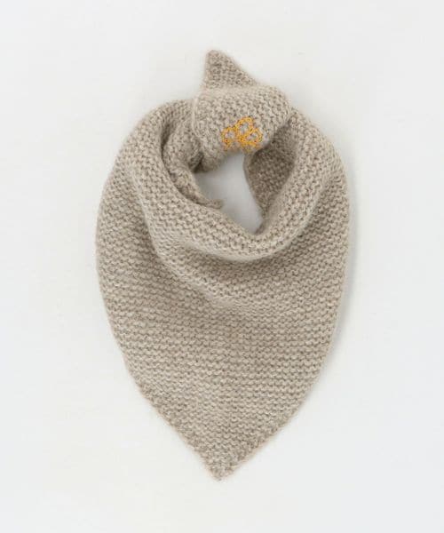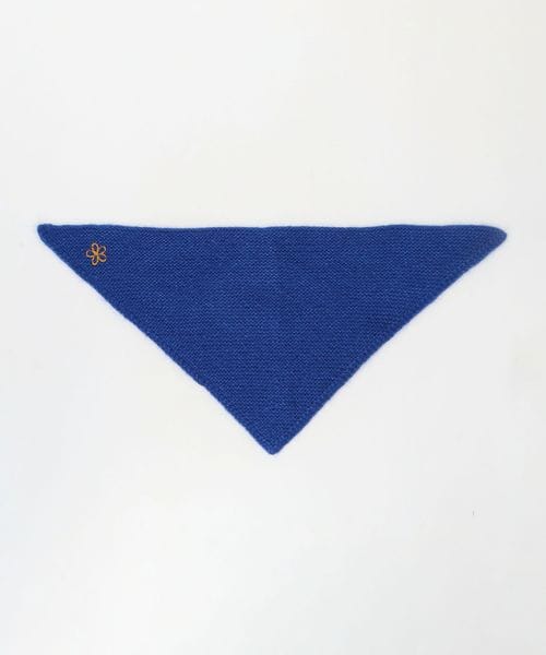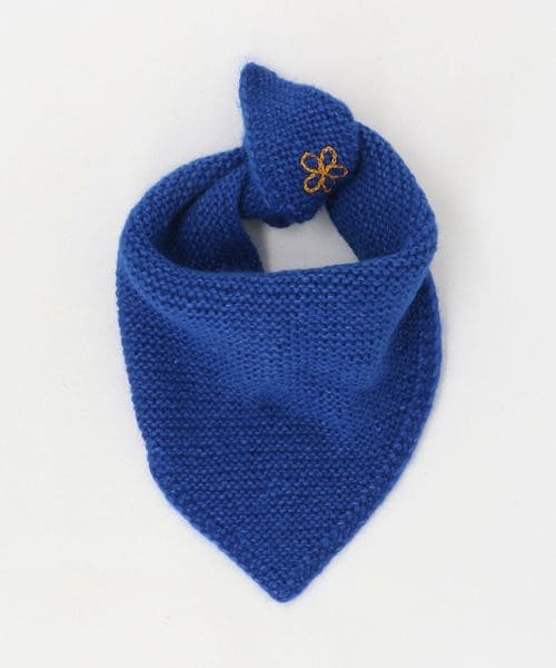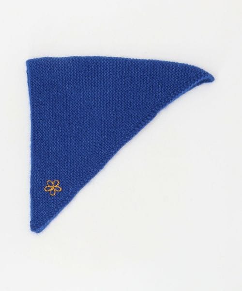 シンプルな無地に映えるフラワーモチーフの刺繍が、愛らしい存在感を放つハンドメイドの三角バンダナ。