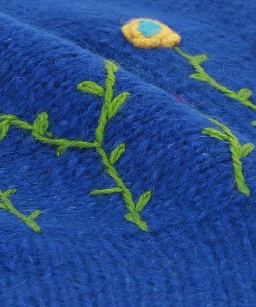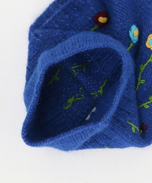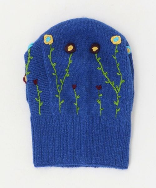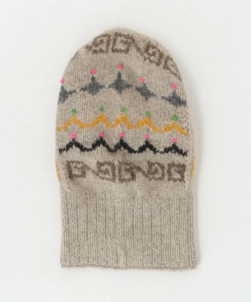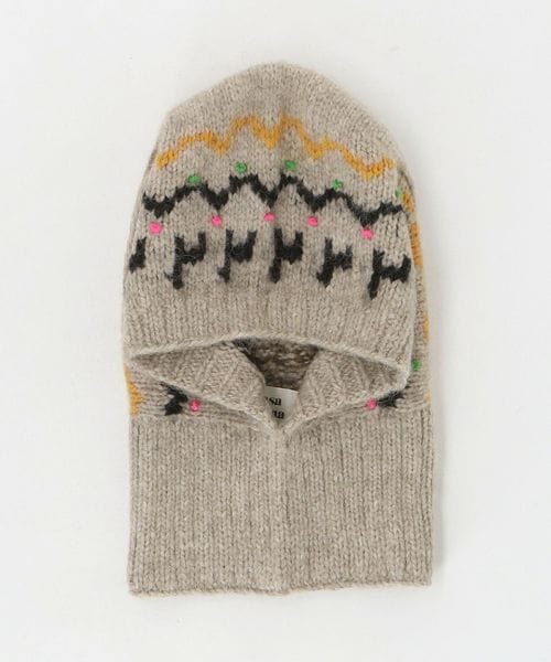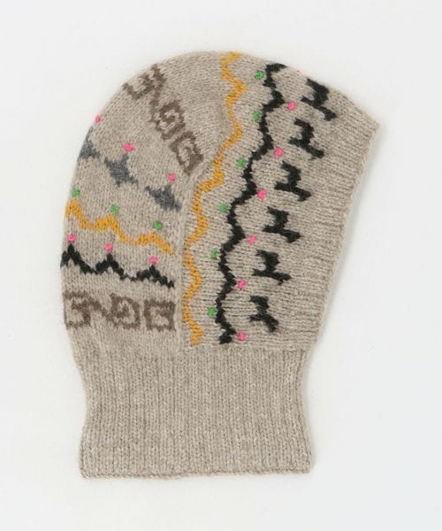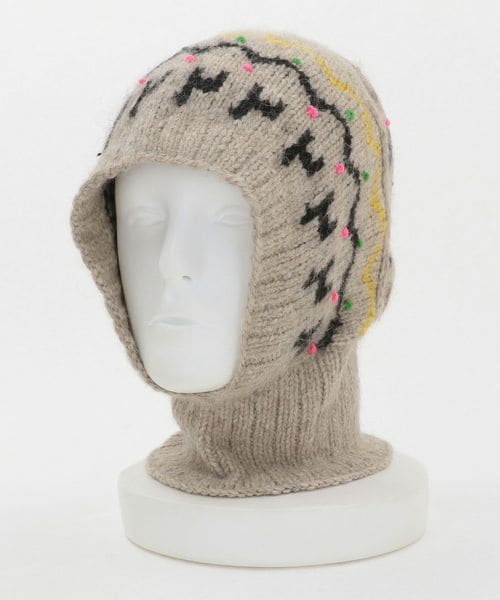 立体的に施されたカラフルなステッチやフラワーモチーフがユニークで目を惹く、ハンドメイドのバラクラバ。
