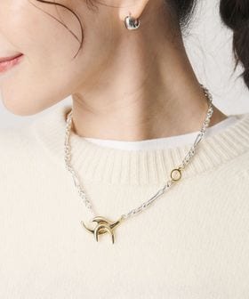抽象的な形をマンテルパーツに仕上げ、チェーンとパーツをシルバーカラーとゴールドカラーにしたネックレス。
