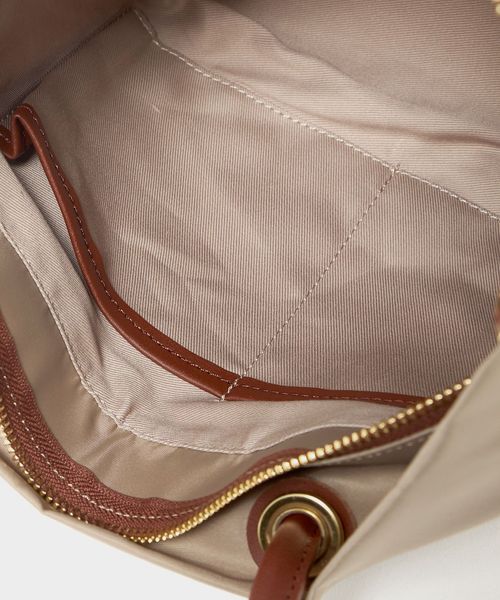 内側は3層に分かれており、ファスナーを閉めたままでもスマホやパスケースなどをアオリポケットからさっと取り出せる便利な仕様。
