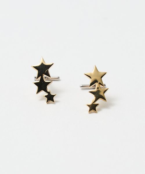 異なるサイズの星モチーフを連ね、繊細なムードを演出するピアス。