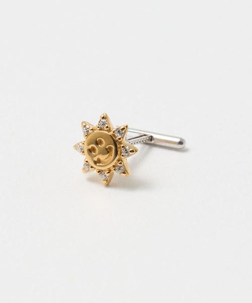 中央の模様を囲むようにストーンをあしらった、太陽モチーフのピアス。
