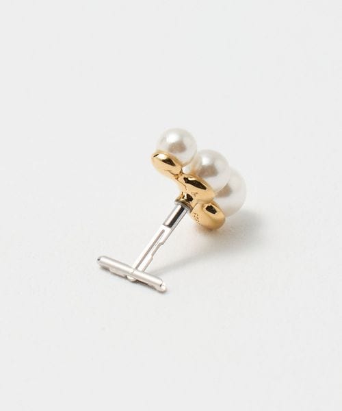 品のある小粒パールモチーフを3つ連ねたデザインのピアス。