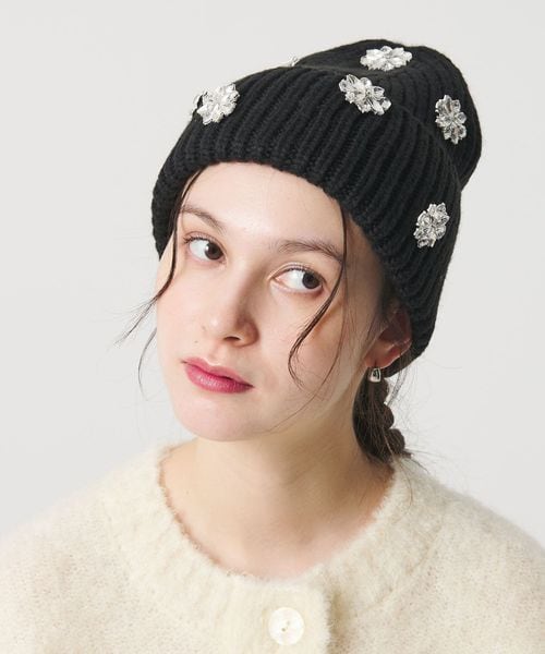 きらきらと輝きを放つビジューが視線を集める<UGG>のカフ付きビーニー。
