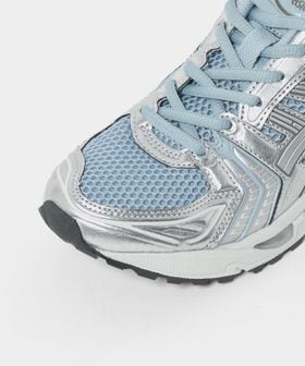 ライトブルーのメッシュアッパーに、シルバーカラーのメタリックディテールを施しアクセントをプラス。