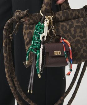 ロープやコードとともに小さなバッグモチーフを一緒に加えたチャーム。