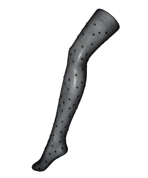キラキラとしたシアー素材にダイヤ柄の刺繍が散りばめられた薄手のストッキング。