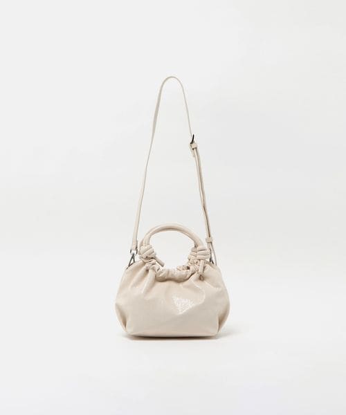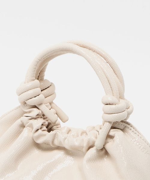さりげない華やぎを添えるカラーと、表情感豊かな素材に馴染んだ装飾的なノットハンドルが印象的です。