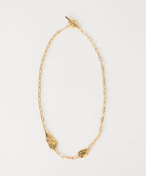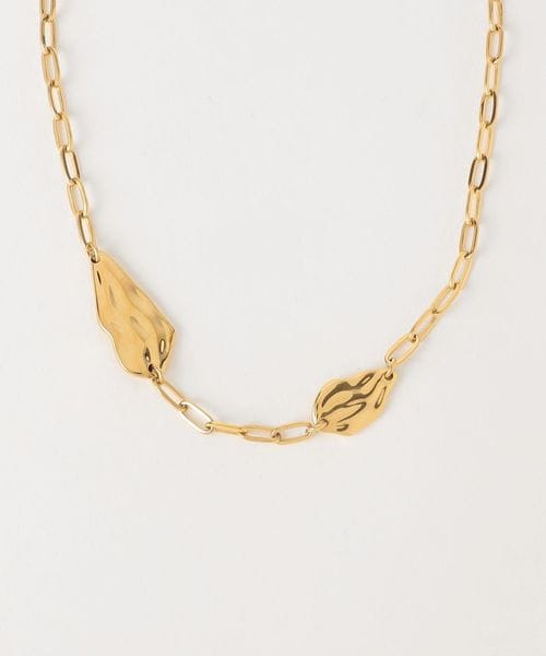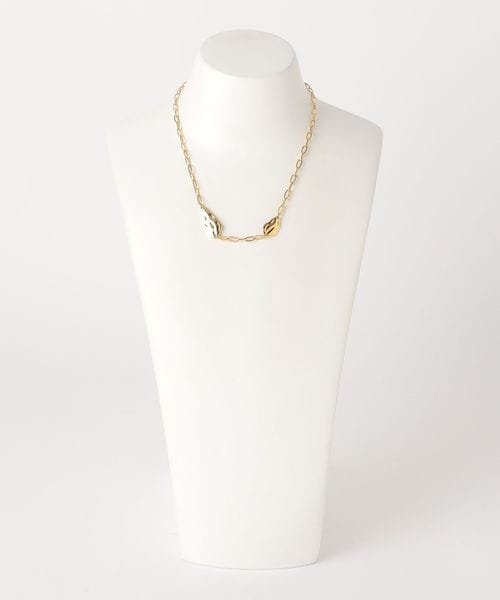 パーツとチェーンの組み合わせが首周りで存在感を発揮するネックレス