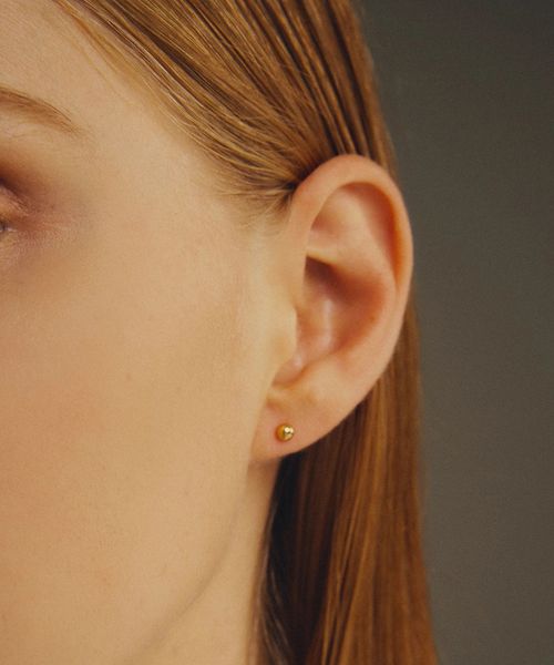 小さな丸いシルエットのピアスは雨粒をイメージした「Mini Drops」シリーズ。