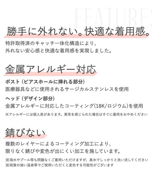 ストレスフリーをコンセプトにしたそのピアスは、“バックキャッチのないピアス”という意味を込め、<Baqless>と名付けられました。