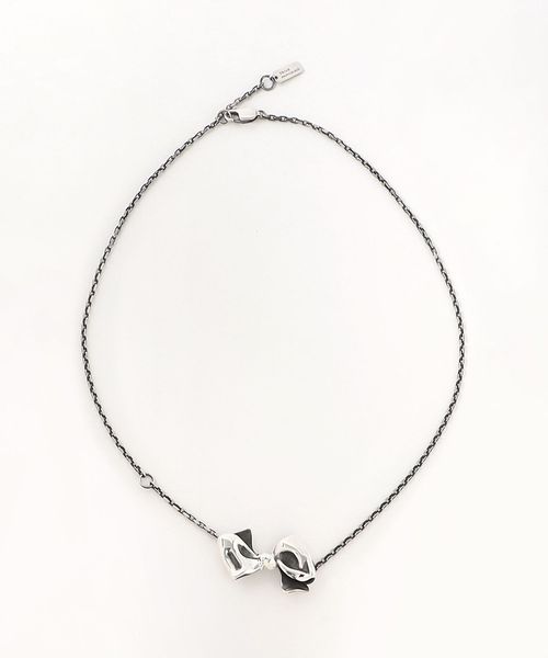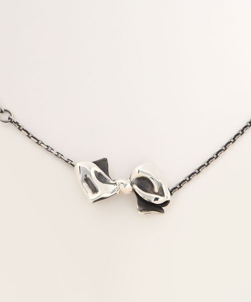 陰影のあるリアルなリボンモチーフが甘すぎず、モダンな可愛らしさを与えてくれるネックレス。