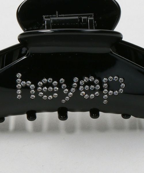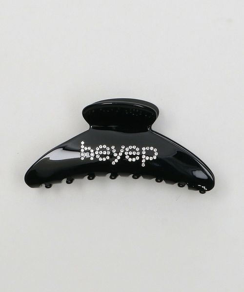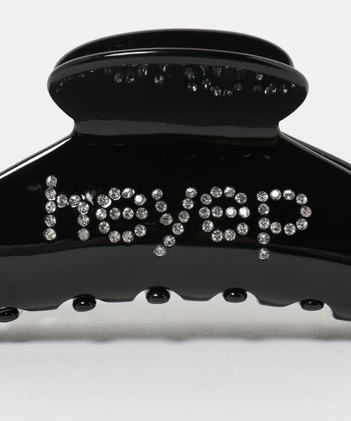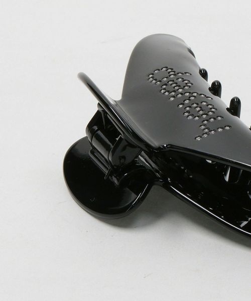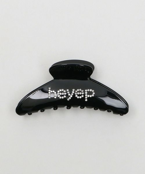 ラインストーンとロゴデザインが特徴的な大きめサイズのヘアクリップ。