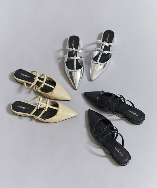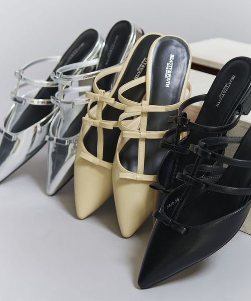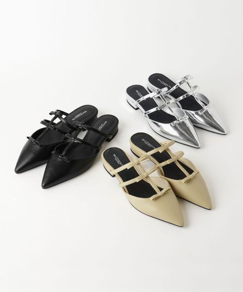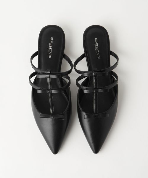 甘辛ミックスが叶う、ポインテッド×リボンデザインが印象的なフラットミュール。