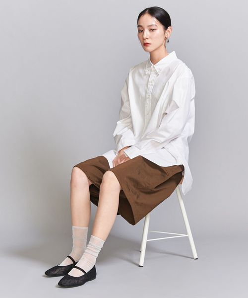 素足でさらっと履くのはもちろん、シアー素材やカラーソックスで足元にアクセントをつけるのが今シーズンらしい着こなし。
