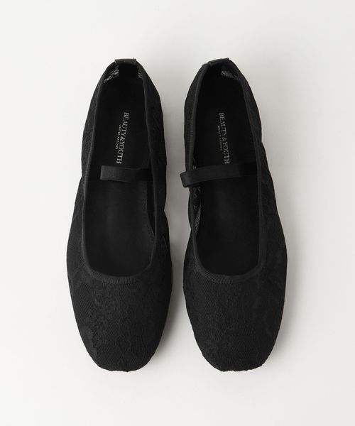 繊細なレースデザインが女性らしさを演出するバレエシューズ。