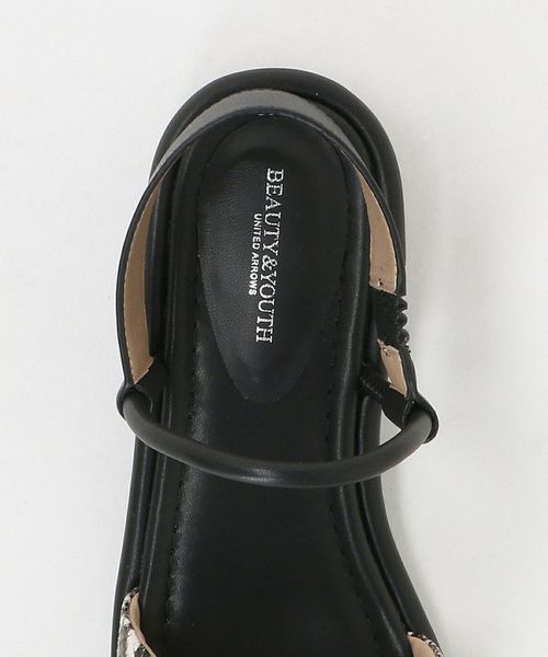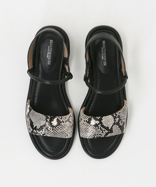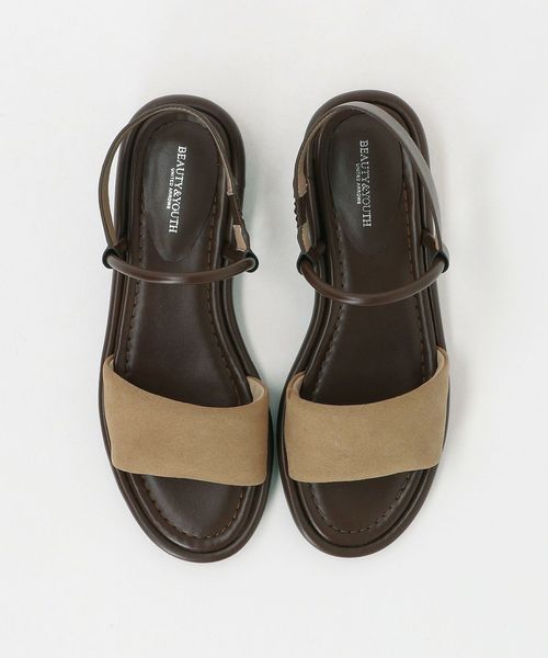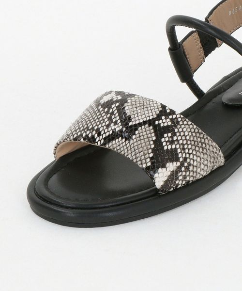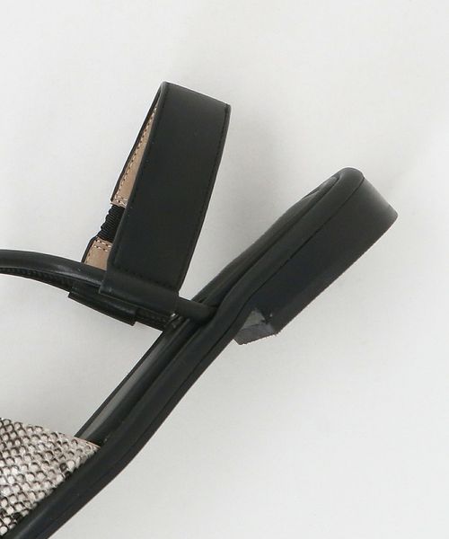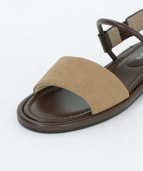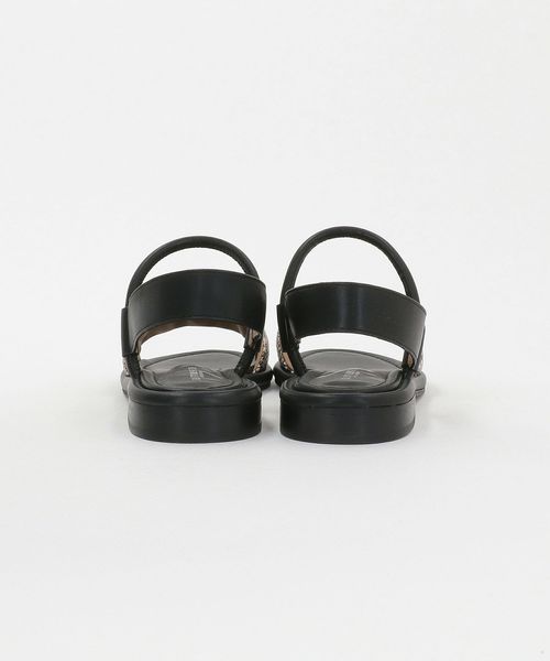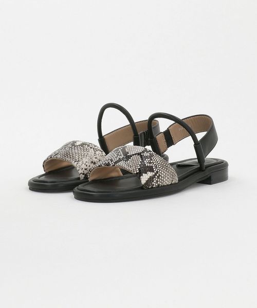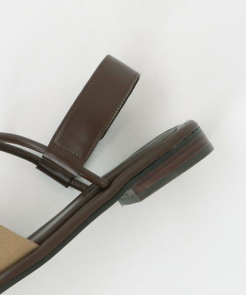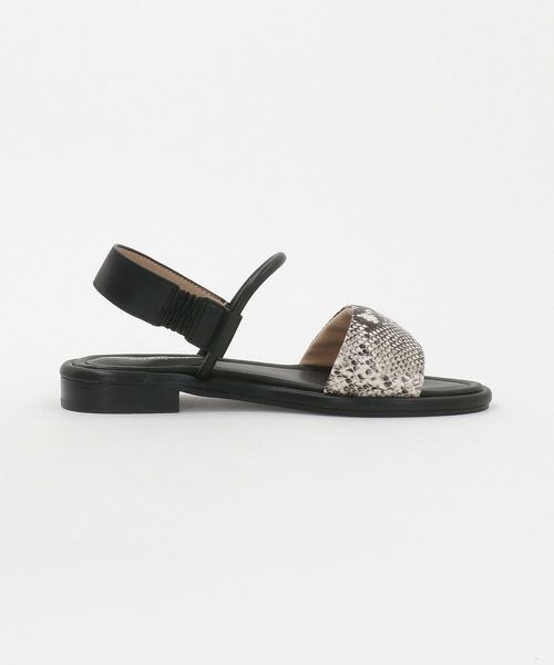 フラットソールに、かかとが固定される太めのバックストラップ仕様で履きやすさを高めています。