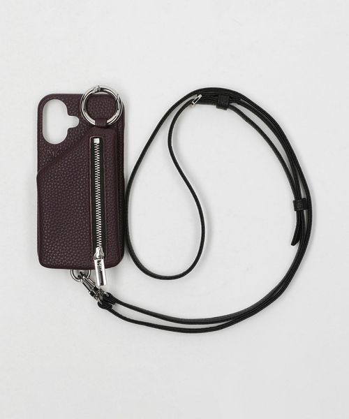 <ajew>の定番ケース"ajew cadenas zipphone case shoulder"は、シルバーカラーのリングとファスナーポケットが象徴的な定番モデル。