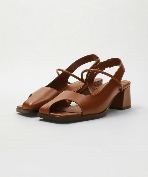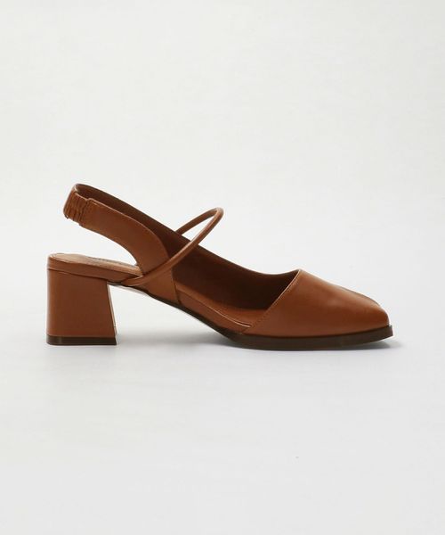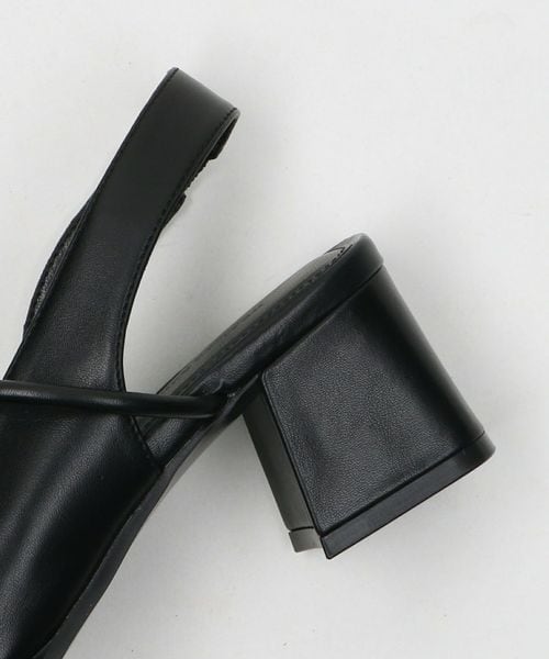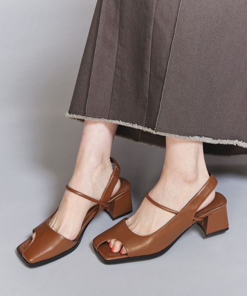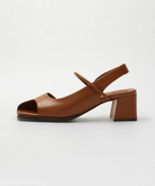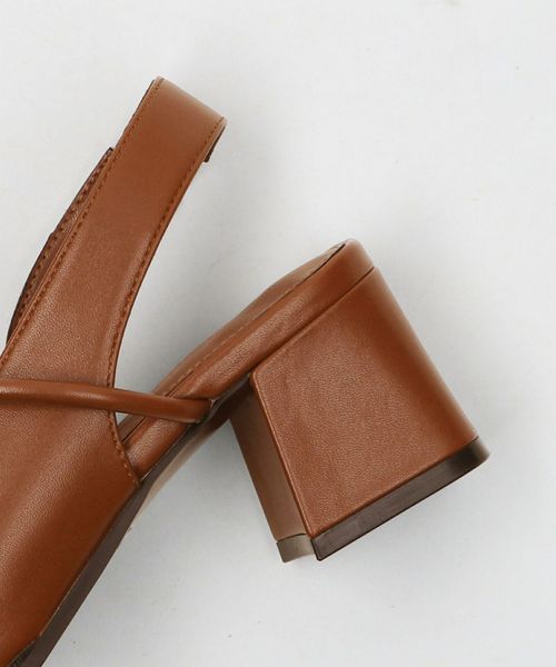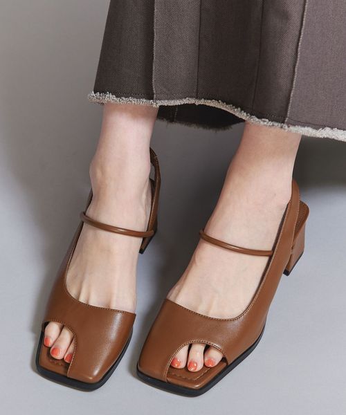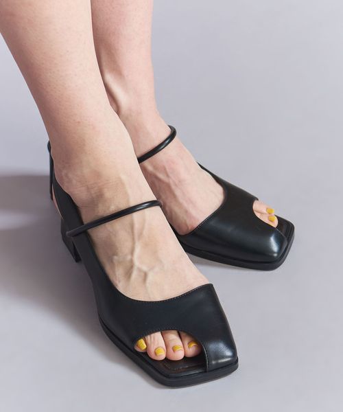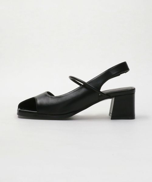 レザーライク オープントゥ バックストラップミュール