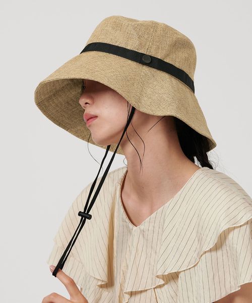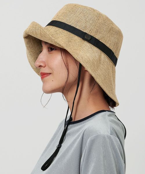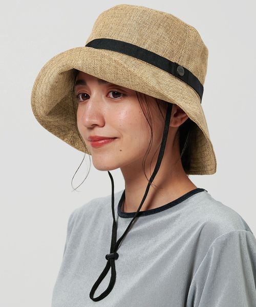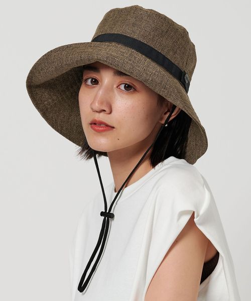 機能的なポリエステル素材を使用しながら、ナチュラルな風合いの天然繊維調に仕上げたハット。