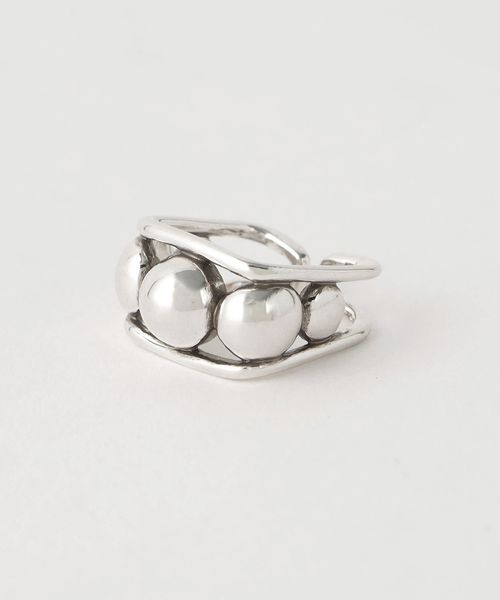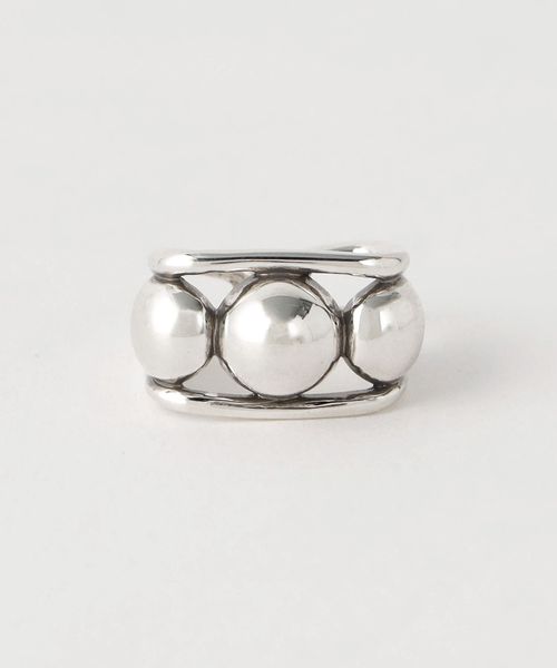 スクエア型にボールモチーフの斬新な組み合わせが目を引くリング。