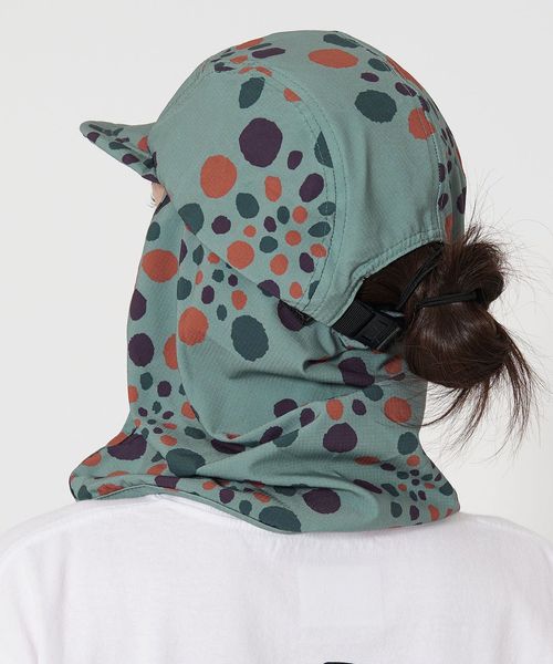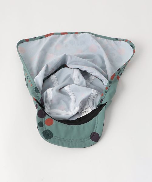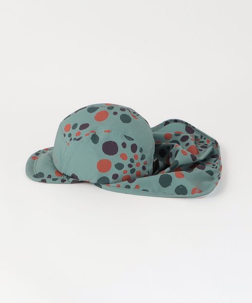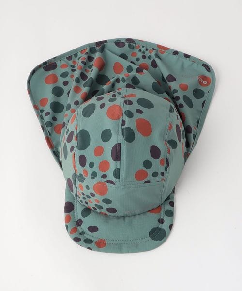 特徴的な柄が目を引く、サンシェード付きキャップ。