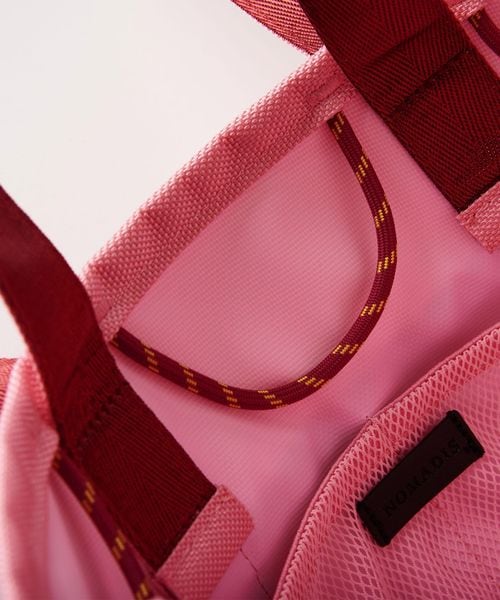 中身の整理がしやすいメッシュのポケットや、さまざまなアイテムを引っかけられるロープが付いた使い勝手の良い仕様です。