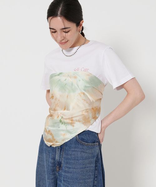 柔らかいトーンのタイダイモチーフで春夏ムードを盛り上げるスカーフ