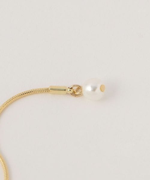 チェーンのエンドにパールモチーフがさりげなく配され、ネックの後ろにもポイントのあるネックレス。