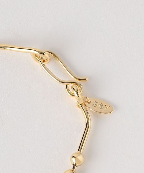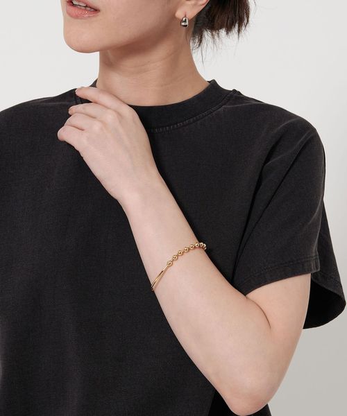 細めのメタルパーツとボールモチーフを組み合わせた、シンプルながらコーディネートにフェミニンな煌めきをプラスしてくれるブレスレット。