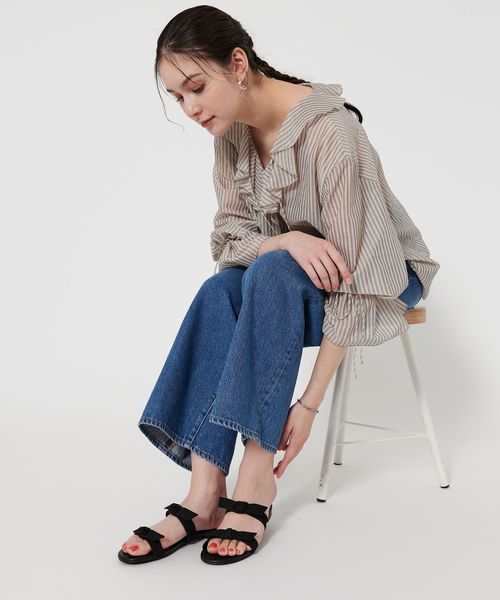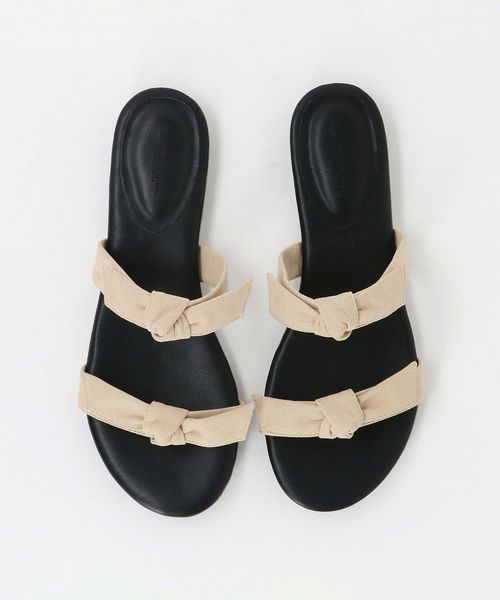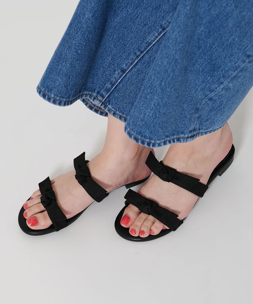 甘さ控えめなリボンディテールがカジュアルスタイルに馴染むサンダル