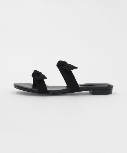 リボンモチーフをアクセントに効かせたトレンドを感じるフラットサンダル。