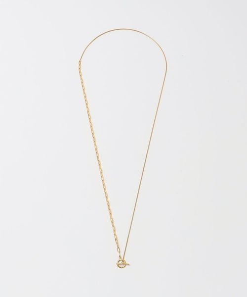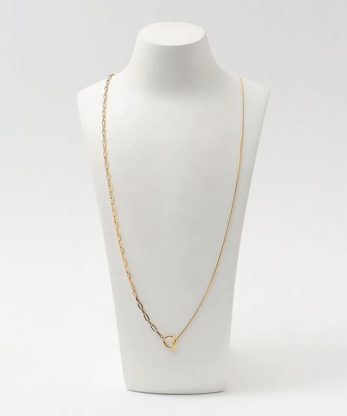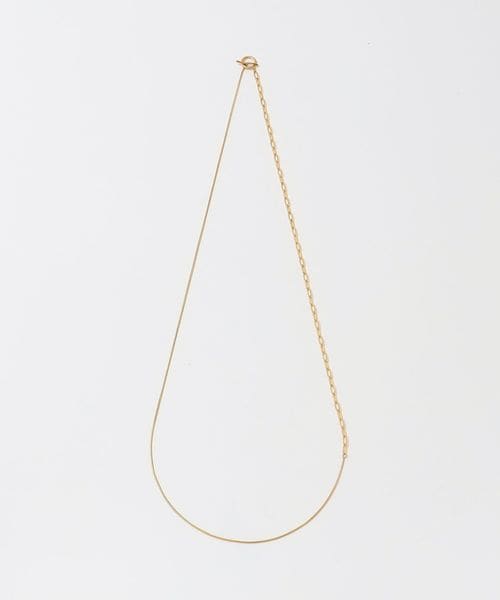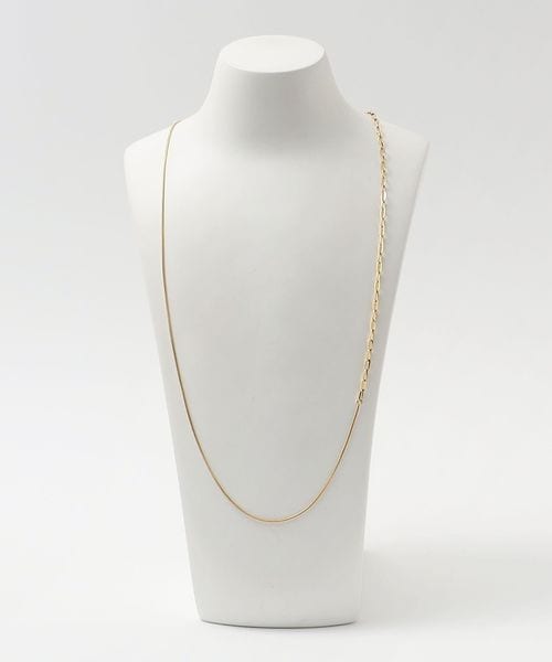 2種類のチェーンを組み合わせた動きのあるデザインは、シンプルながらも首元で存在感を発揮。