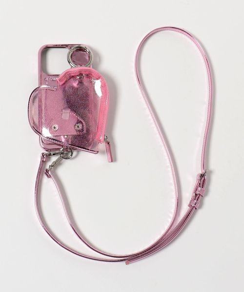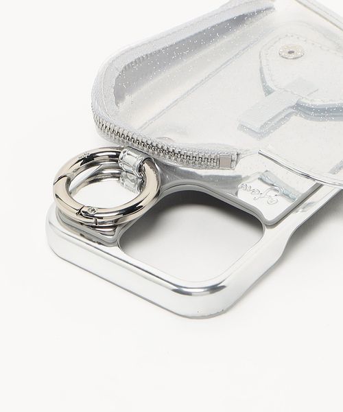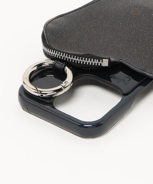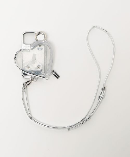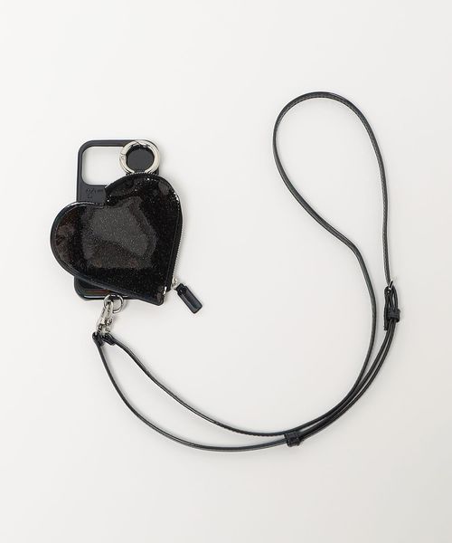 ケースに大胆にドッキングされたジップ付きのハートモチーフポケットが魅力のアイテム。
