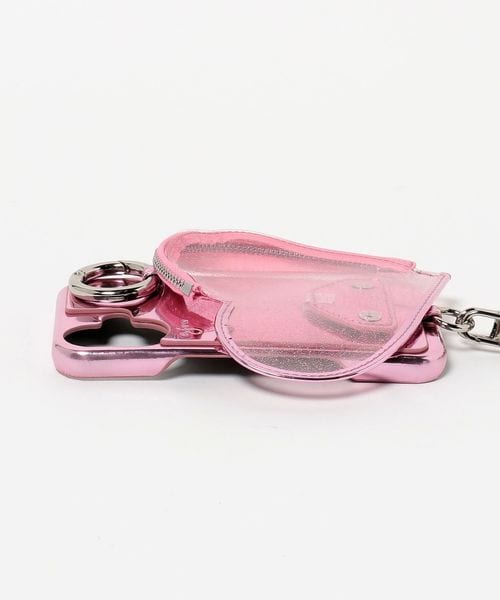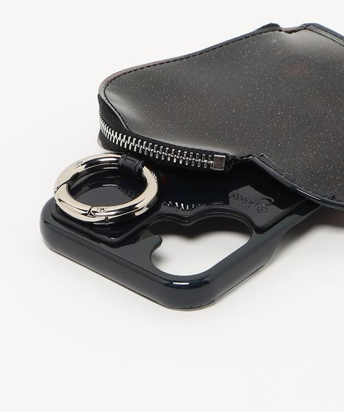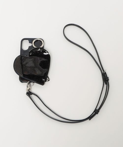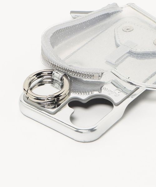 ケースに大胆にドッキングされたジップ付きのハートモチーフポケットが魅力のアイテム。