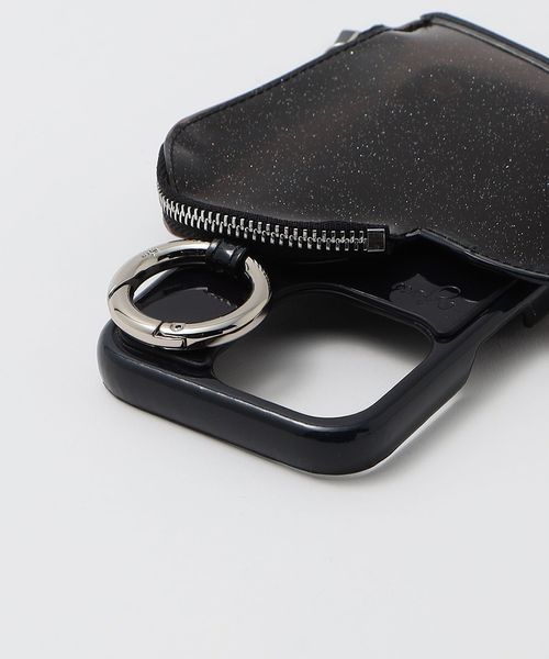 ケースに大胆にドッキングされたジップ付きのハートモチーフポケットが魅力のアイテム。