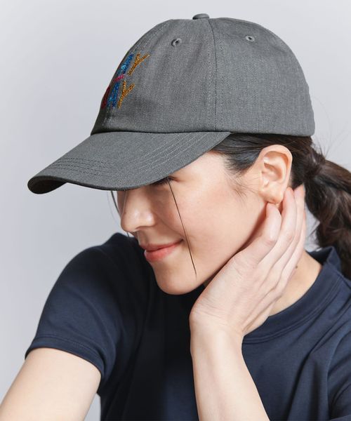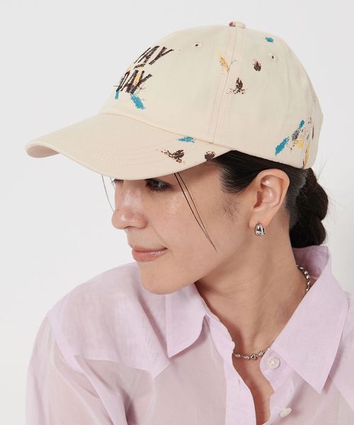 ペイントと刺しゅうが施されたUSED感漂うキャップを別注で作製。